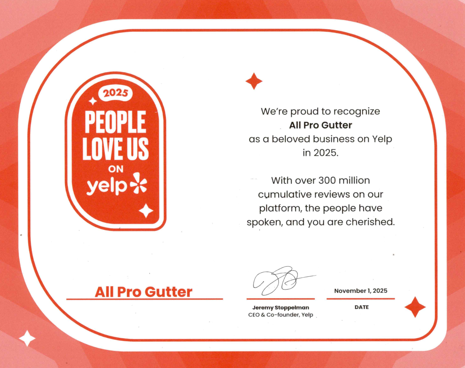 We’re thrilled to be recognized with Yelp’s “People Love Us for 2025” award! 🏆